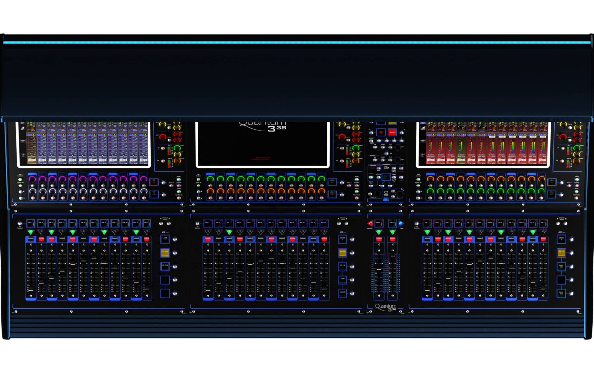 DiGiCo Quantum 338 — мощная консоль нового поколения на базе FPGA 7-го поколения. 128 входных каналов, 64 шины и три 17″ мультитач-экрана высокой яркости. Оснащена 38 фейдерами, Mustard Processing, Spice Rack и встроенным UB-MADI интерфейсом.