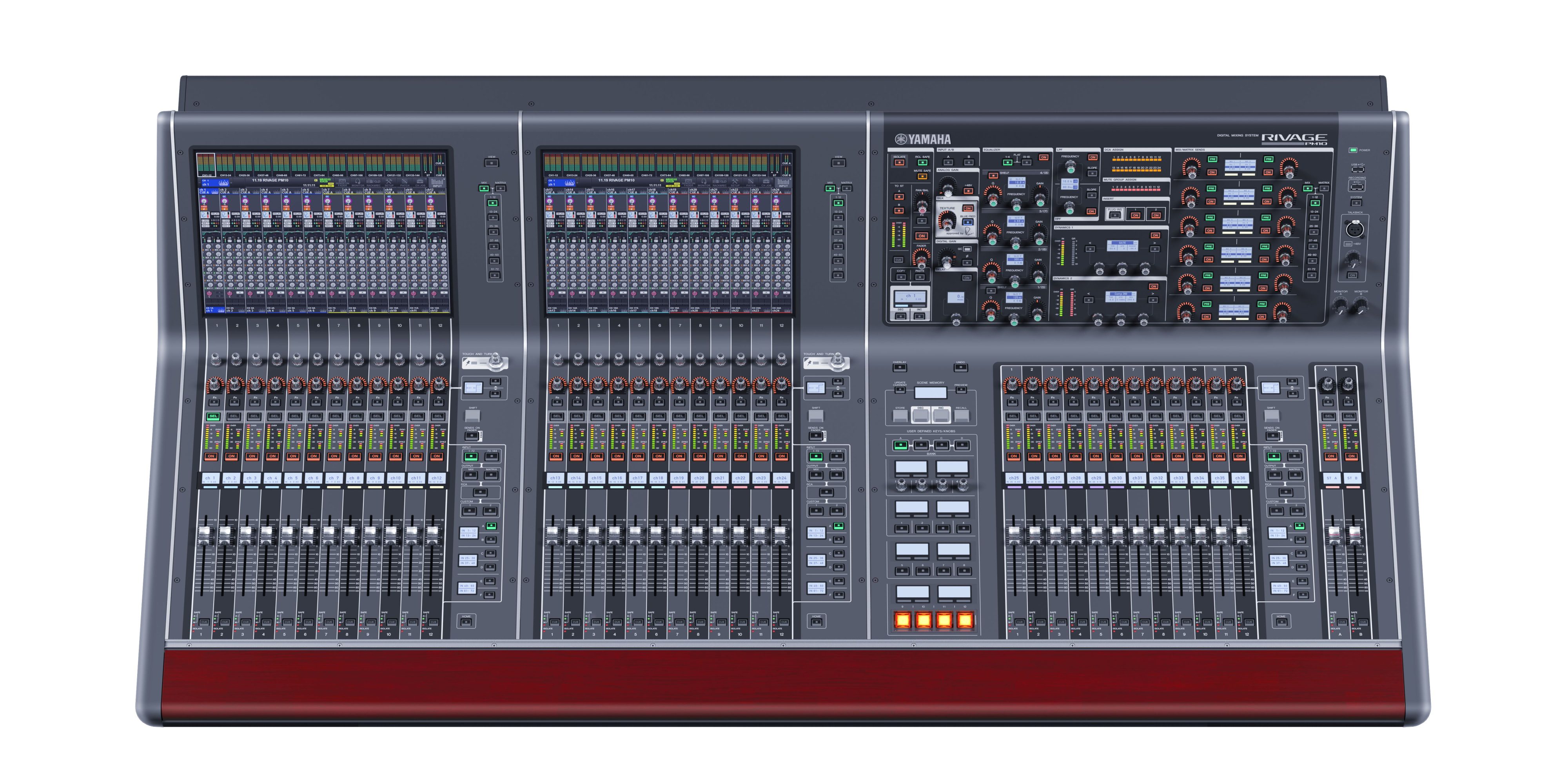 Yamaha RIVAGE PM10 — флагманская цифровая микшерная система для живых концертов, театров, инсталляций и вещания. Пульт управления CS-R10 обеспечивает высочайшую точность, эргономику и гибкость работы. Он объединяет мощный DSP-двигатель, систему передачи данных TWINLANe, интеграцию Dante, а также поддержку плагинов Rupert Neve Designs SILK, обеспечивая легендарное аналоговое звучание с цифровой стабильностью.